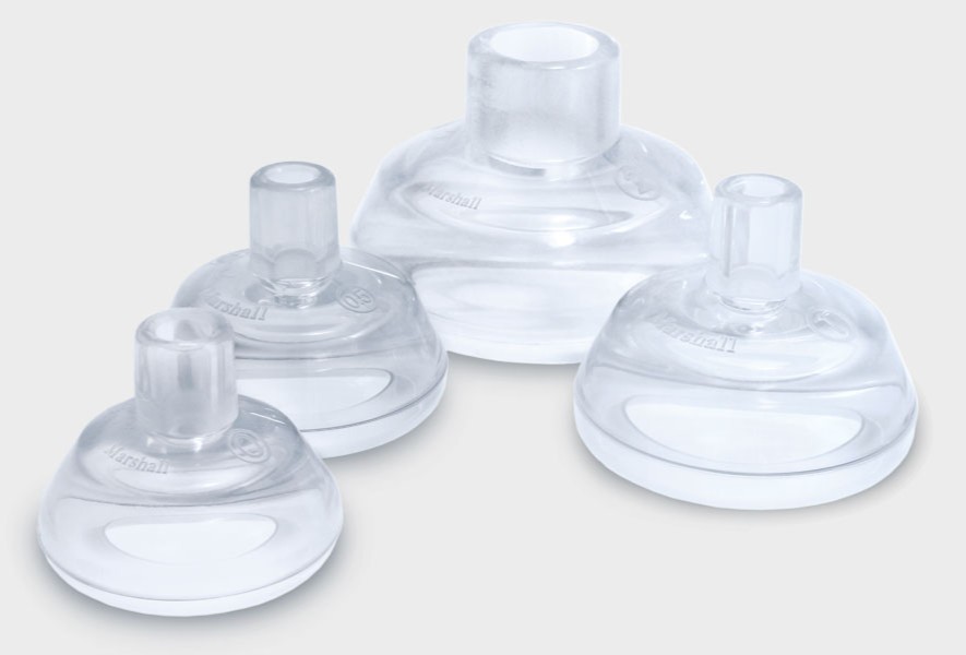 Marshalls runda narkosmask är utformad med sidostödsväggar som inte kollapsar under tryck och som säkerställer en perfekt tätning mot patientens ansikte samt korrekt tillförsel av syrgas.